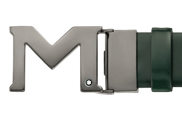 Boucle plate rectangulaire en acier inoxydable pvd & cuir noir lisse, sur lanière de 3 x 120 cm en cuir noir.