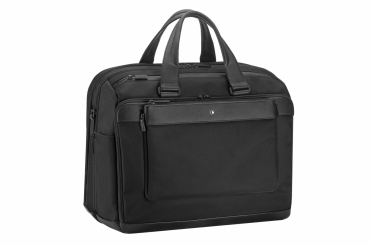 Conçu pour le globe-trotteur moderne, ce sac à dos moyen modèle est doté de deux compartiments contenant plusieurs poches : un compartiment rembourré pour un ordinateur portable, des espaces supplémentaires pour des dossiers et accessoires, deux poches pour des téléphones portables, trois pattes pour des instruments d’écriture et plusieurs poches extérieures et intérieures, dont une équipée de la technologie Montblanc Shield (doublure avec système de blocage RFID). Le sac est également équipé au dos d’un système pour l’attacher à une valise et d’un rabat tempête en nylon pour le protéger en cas de pluie.