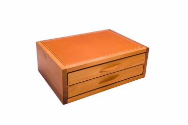 Un petit bijou que ce coffret de manufacture parfaite avec une fermeture aimantée et deux petites poignées de bois galbées. 11 alvéoles confortables sont gainées d’une feutrine assortie qui protègera vos stylos.