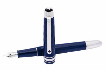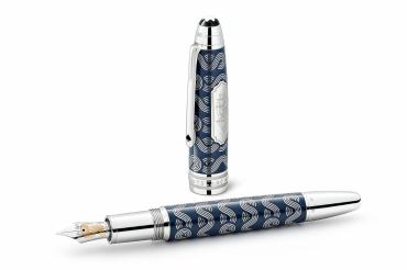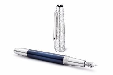 La collection Meisterstück Around the World in 80 Days est inspirée par le fameux roman d’aventures de Jules Verne. Le stylo plume Legrand en résine précieuse bleue renvoie à la première partie du voyage. Ses personnages principaux voyagent de Londres à Bombay, essentiellement dans un bateau à vapeur, traversant la mer Méditerranée puis le canal de Suez. Le capuchon est gravé d'un motif représentant les éléments clés du roman : vagues, enseignes de cartes et une cartouche contenant un bateau à vapeur tracé au laser. Sur le sommet du capuchon figure la durée du voyage embossée, soit 80 jours dont 18 de Londres à Bombay. L'instrument d’écriture est doté d’une plume fabriquée main 14 K rhodiée, sur laquelle figurent la montgolfière, ainsi que les dates de début et de fin de l’aventure. Collection "Le Tour de Monde en 80 Jours"